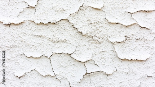 © Windi, Obraz premium Close-up of a textured white wall with peeling paint and visible cracks