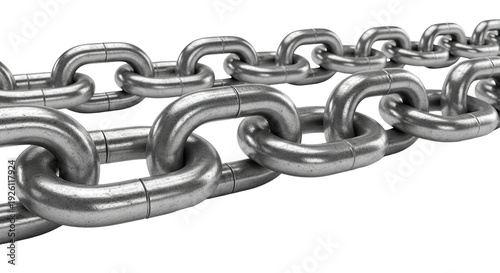 Obraz premium Close-up of a thick, silver metal chain against a white background
