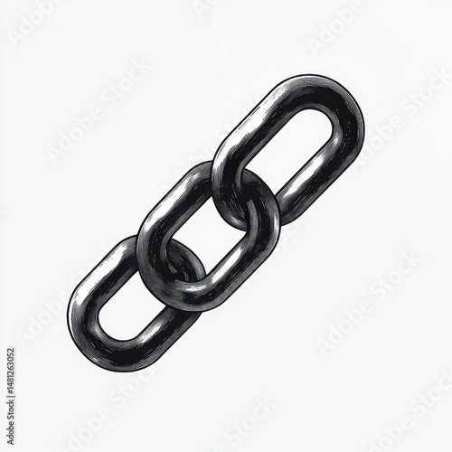 Obraz premium Close-up of a three-metal-link chain with a shiny, polished surface on a plain white background