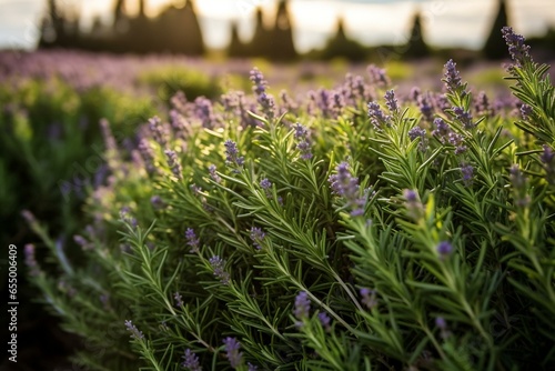 Naklejka premium Close-up of a thriving rosemary field. Generative AI