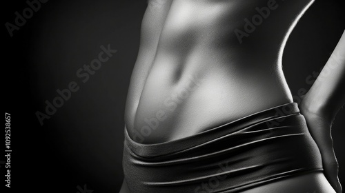 Naklejka premium Close-up of a toned female midsection with a delicate navel piercing, smooth skin illuminated softly to emphasize elegance and body art detail