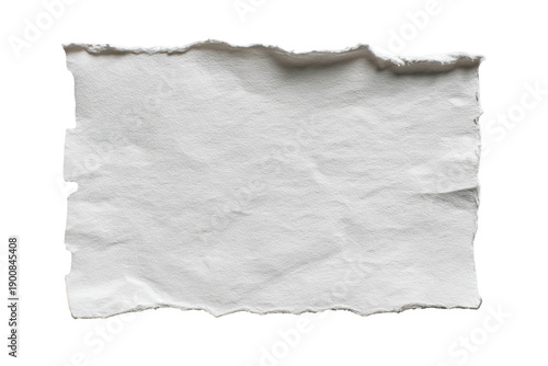 Fototapeta premium Close-up of a torn, rectangular piece of white paper with textured surface...