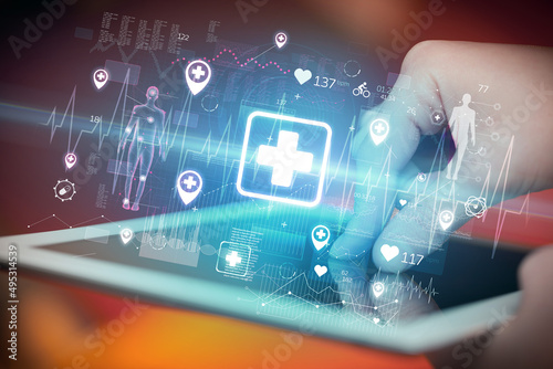 Fototapeta premium Close-up of a touchscreen with healthcare icons