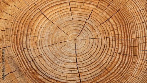 © PHOTO-GRAPHY, Naklejka premium Close-up of a tree stump cross-section showing growth rings and cracks wood timber