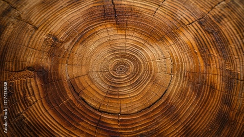 © Tina, Fototapeta premium Close-up of a tree stump showing concentric growth rings and natural wood texture.