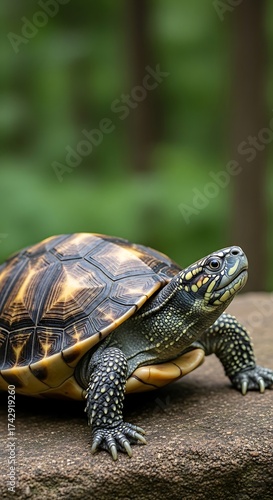 © Peternak, Obraz premium Close Up of a Turtle on a Stone Surface.