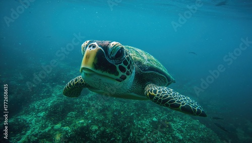 © TheWaterMeloonProjec, Fototapeta premium Close-up of a turtle underwater