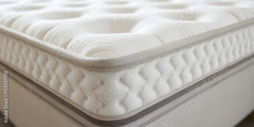 © Qrryferry, Obraz premium Close-up of a unique mattress revealing its soft texture and intricate design, highlighting the careful craftsmanship put into its creation to enhance comfort and support