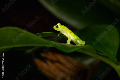 Obraz premium Close-Up of a Valerioi Glass Frog Resting on a Leaf