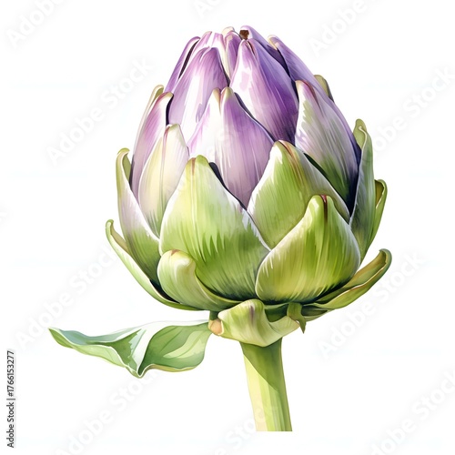 Fototapeta premium Close-up of a vibrant artichoke bud, showcasing its intricate layers and...