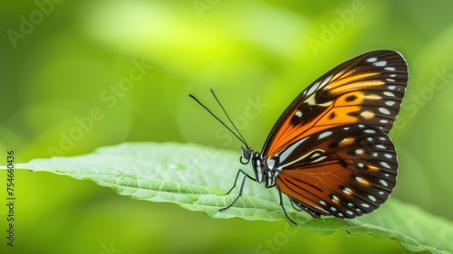 Fototapeta premium Close-up of a vibrant butterfly resting on a green leaf
