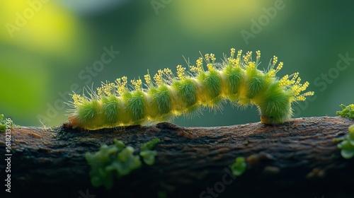 © dr.lines, Naklejka premium Close-up of a vibrant caterpillar on a tree branch