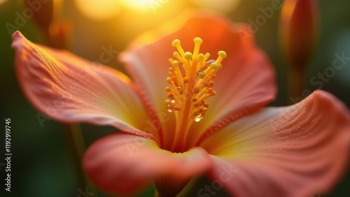 Fototapeta premium Close-Up of a Vibrant Flower Petal with a Single Water Drop