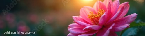 Naklejka premium Close-up of a vibrant flower slowly opening its petals, soft light illuminating its delicate texture, signifying peaceful blossoming and tranquility , flourishing, flora, aesthetics