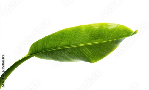© Ishika, Fototapeta premium Close-up of a vibrant green banana leaf against a white background
