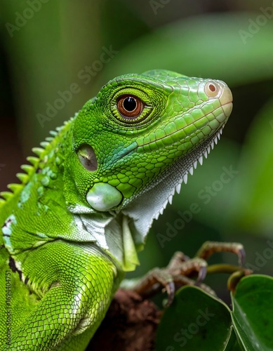 © rumahkita, Fototapeta premium Close-up of a vibrant green iguana (2)