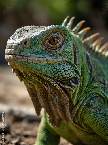 Fototapeta premium Close-up of a vibrant green iguana outdoors.