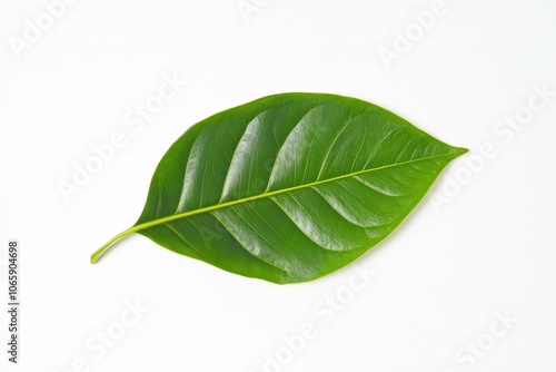 Obraz premium Close-up of a vibrant green leaf against a white background