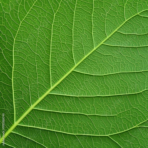 © Big9869, Obraz premium Close-up of a vibrant green leaf's intricate vein pattern.