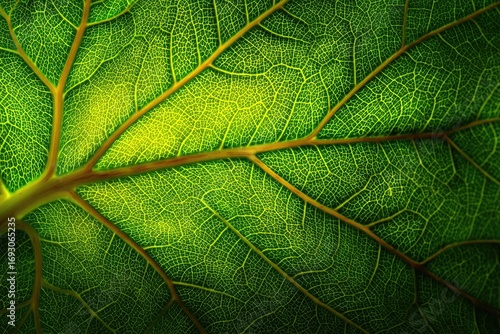 Obraz premium Close-up of a vibrant green leaf's intricate vein structure