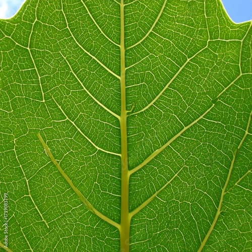 © Tengkek, Obraz premium Close-up of a vibrant green leaf's intricate vein structure (1)