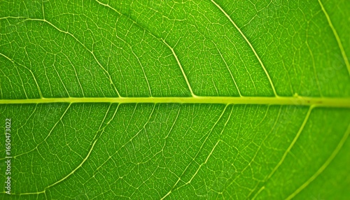 Obraz premium Close-up of a vibrant green leaf, showcasing intricate vein patterns