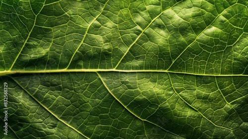 Obraz premium Close-up of a vibrant green leaf, showcasing its intricate details and natural beauty. Perfect for nature and botanical themes
