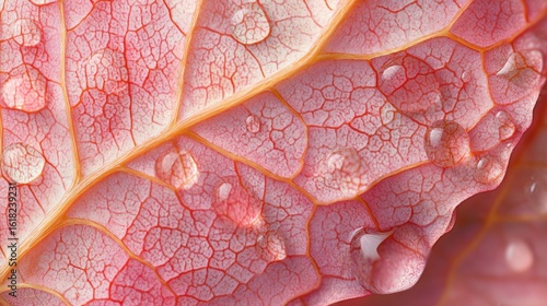 Obraz premium Close-up of a vibrant leaf with water droplets (1)