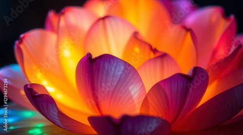 Naklejka premium Close-up of a vibrant lotus flower showcasing its intricate petal layers and...