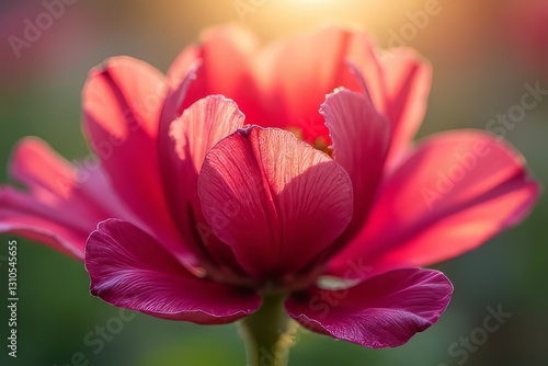 © PomPam, Fototapeta premium Close-up of a Vibrant Pink Flower in Sunlight