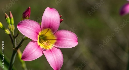 Fototapeta premium Close-up of a vibrant pink flower with yellow center