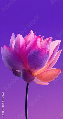 © Bintang, Fototapeta premium Close-up of a vibrant pink lotus flower against a vibrant purple gradient background
