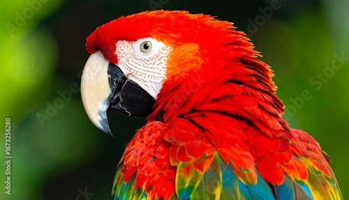 Naklejka premium Close-up of a vibrant red and green macaw (1)