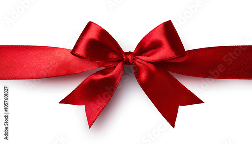 Fototapeta premium Close-up of a vibrant red ribbon tied in an elegant bow against a white background, ideal for festive occasions, gifts, and celebrations.