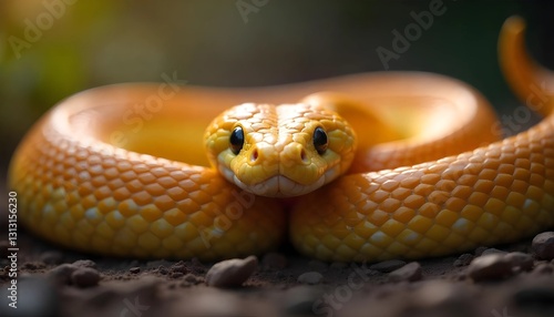 © Titus Pramudya, Fototapeta premium Close-up of a vibrant snake coiled on the ground