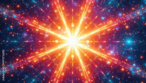 Naklejka premium Close-up of a vibrant starburst pattern in white, radiating outwards from a...