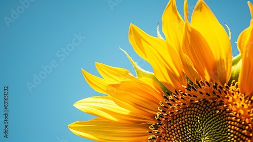 Fototapeta premium Close-up of a vibrant sunflower under a clear blue sky, showcasing its bright...