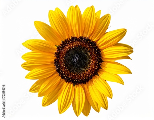 © Pure Imagination, Fototapeta premium Close Up of a Vibrant Yellow Sunflower Bloom Isolated on White Background in Bright Sunlight