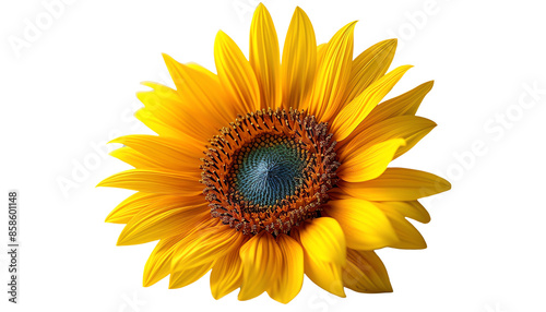 Fototapeta premium Close-up of a vibrant yellow sunflower isolated on transparent and white background.