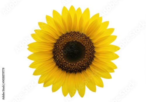 Fototapeta premium Close-up of a vibrant yellow sunflower with a dark brown center against a clean white background
