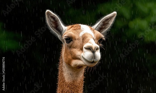 Obraz premium Close-up of a vicuña in the rain