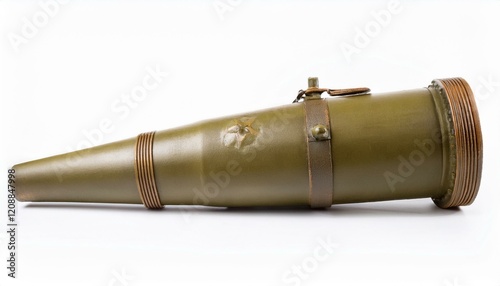 © art, Fototapeta premium Close-up of a vintage military projectile, showcasing its olive-green casing and metallic accents.