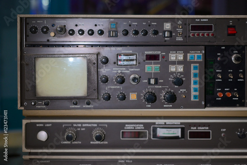 © EnzoKin, Obraz premium close up of a vintage Spectrum Analyzer panel