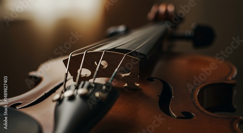 Fototapeta premium Close-up of a Violin: A Symphony of Wood and String