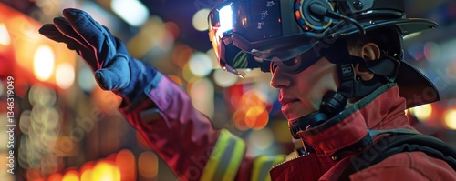 © Sasha, Fototapeta premium Close-up of a VR-based training simulation for firefighters, preparing them for real-world emergencies.