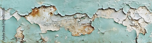 © sungedi, Obraz premium Close-up of a weathered wall with peeling paint revealing underlying layers.