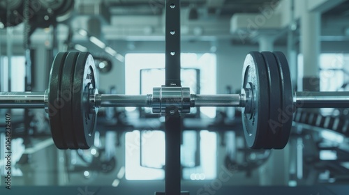 © Imsuniyah, Naklejka premium Close-up of a Weight Barbell in a Gym Setting
