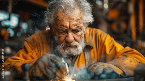 © Mosaic Mind, Obraz premium Close-up of a Welder Working on Metal in a Workshop