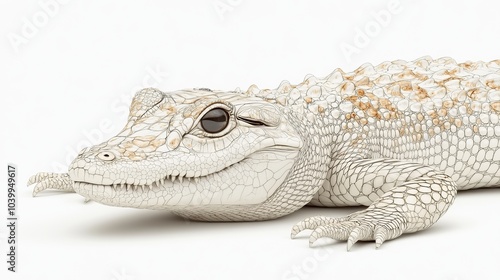 Fototapeta premium Close-up of a white alligator with brown spots, facing the camera with a...