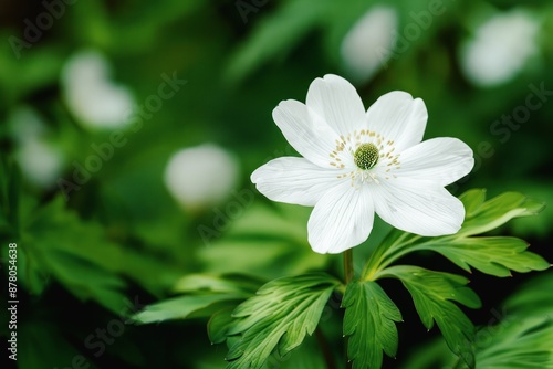 © id512, Fototapeta premium close-up of a white anemone flower in full bloom surrounded by green foliage